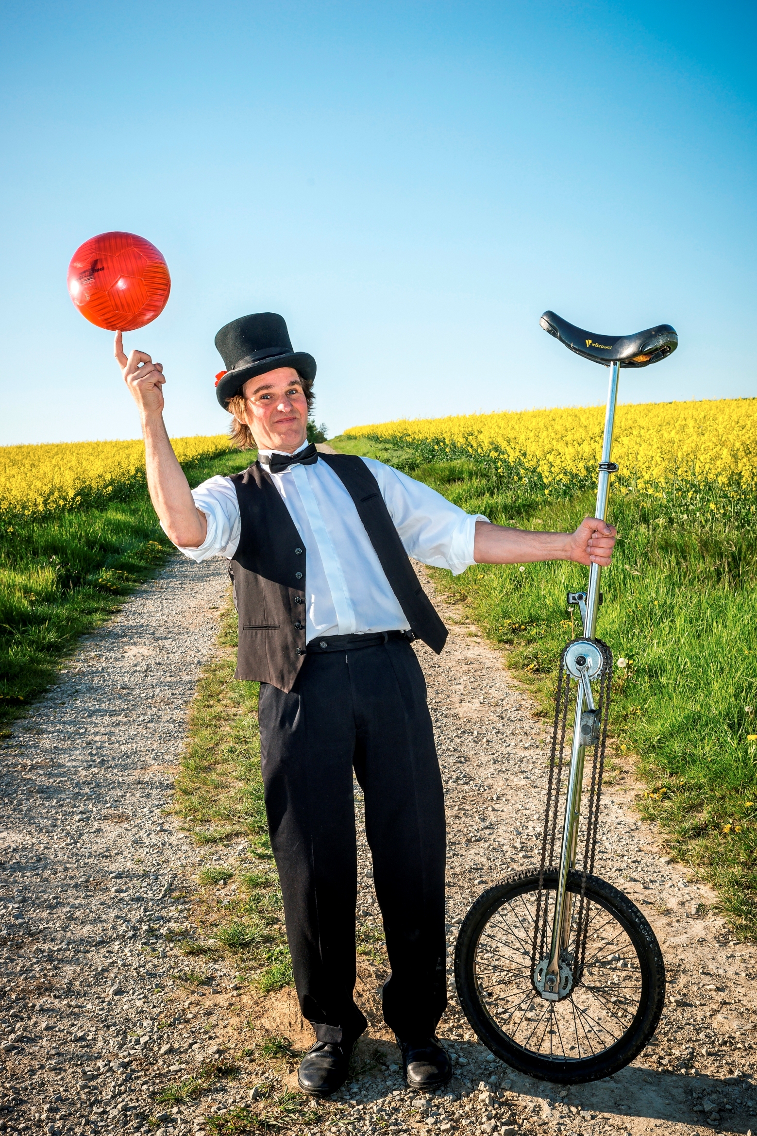 Der Tausendsassa Hironimus ist abgefahren und tourt mit Koffern voller Requisiten durch die Welt. Die theatralen Showeinlagen aus Zauberei, Jonglage, Comedy und Radartistik sind so