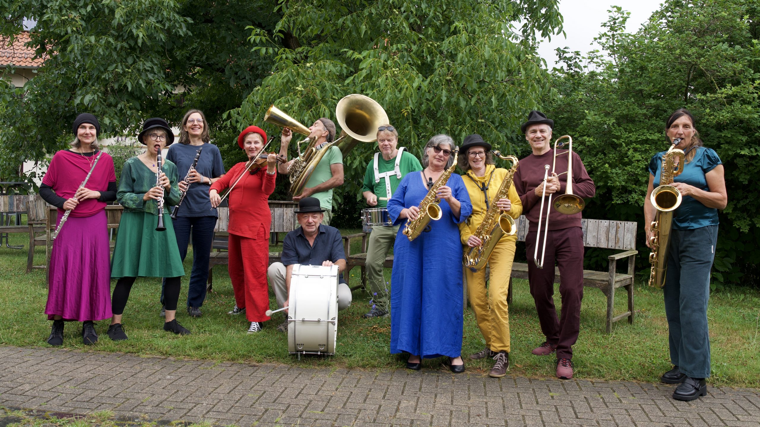 Musik mit Groove aus aller Welt – Die bunte Band Jessiebrasscollective aus Kassel – elf Musiker/innen mit Blech- und Holzblasinstrumenten, Geige und Drums – laden Euch mit vielfältiger Musik, von Balkan bis Pop, zum Grooven und Tanzen ein.